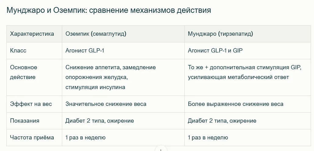 Мунджаро и Оземпик: сравнение механизмов действия Таблица